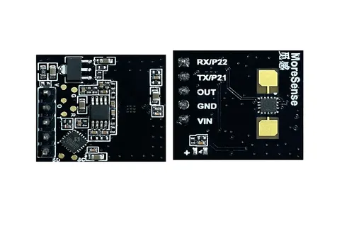 The MORESENSE MS24-2020D58M4-CW is a 26 GHz (24.0–24.25 GHz) microwave radar sensor for micro-motion detection, with a range up to 8 meters. It operates on 5–12V DC, draws 62 mA, and features GPIO output with I²C configuration. The compact module (20×20 mm) offers high sensitivity for detecting subtle movements, making it ideal for smart lighting, security, and IoT applications. It is RoHS certified and supports wall mounting through glass or plastic.